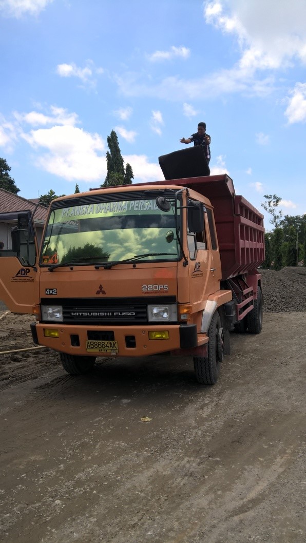 Pada proyek konstruksi jalan, Dump truk digunakan untuk mengangkut material seperti agregat pondasi kelas A, aspal, pasir dan material timbunan. Dump t ruc k yang di pakai dalam proyek ini adalah dump truck merk Mitsubishi Fuso 220PS kapasitas . Alat angkut dump truck ini di datangkan langsung dari kontraktor pelaksana. Gambar dump truck dapat dilihat pada Gambar 5.7 dump truck Mitsubishi Fuso 220PS